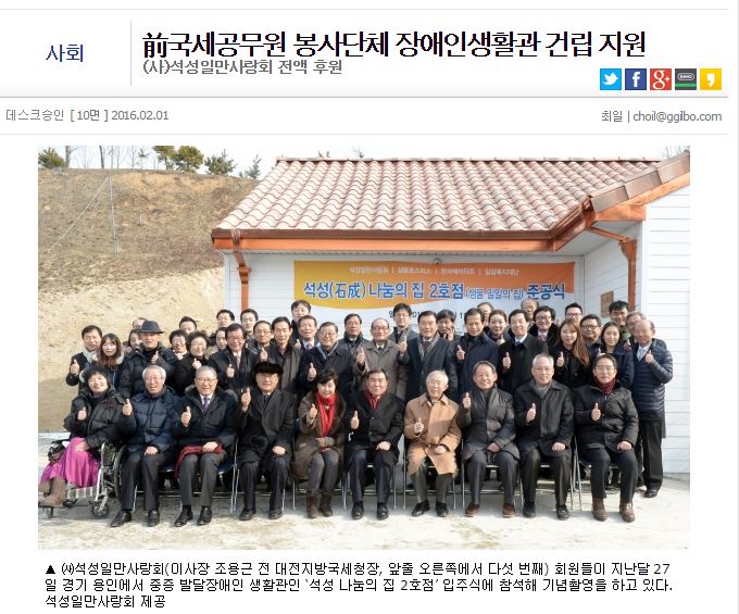 [금강일보] 前국세공무원 봉사단체 장애인생활관 건립 지원