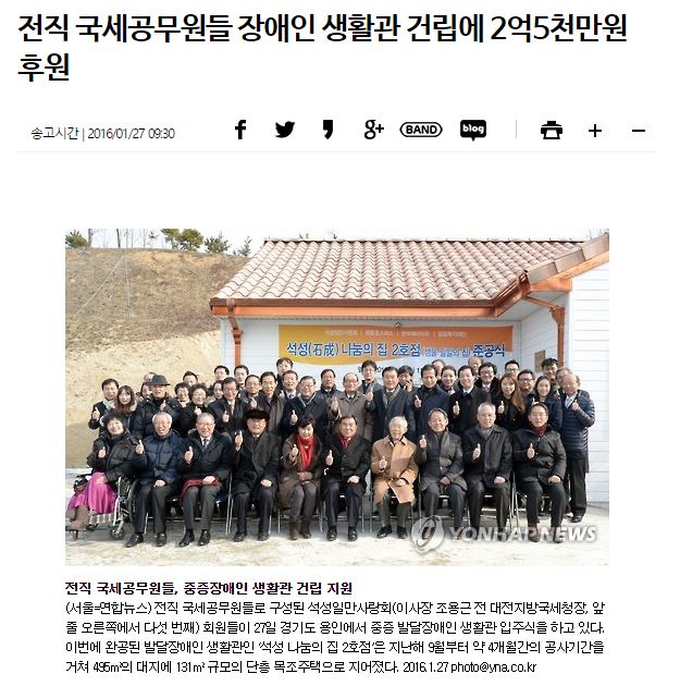 [연합뉴스] 전직 국세공무원들 장애인 생활관 건립에 2억5천만원 후원