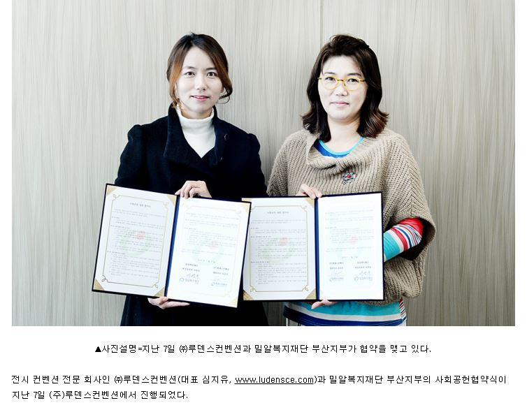 [e뉴스페이퍼] 밀알복지재단 부산지부, ㈜루덴스컨벤션과 사회공헌협약 체결