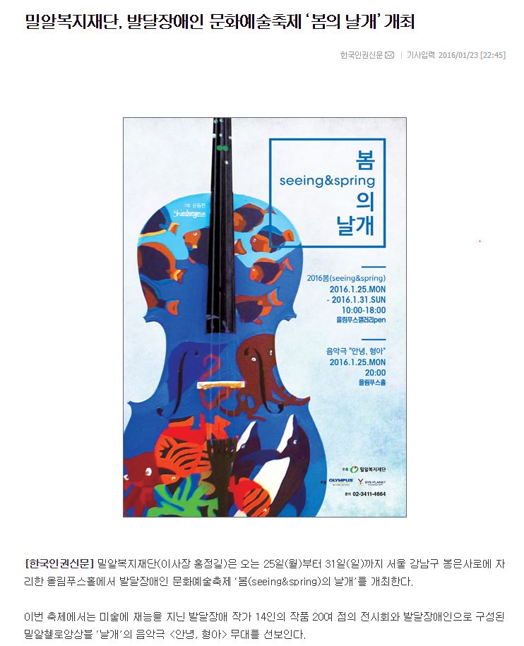 [한국인권신문] 밀알복지재단, 발달장애인 문화예술축제 ‘봄의 날개’ 개최