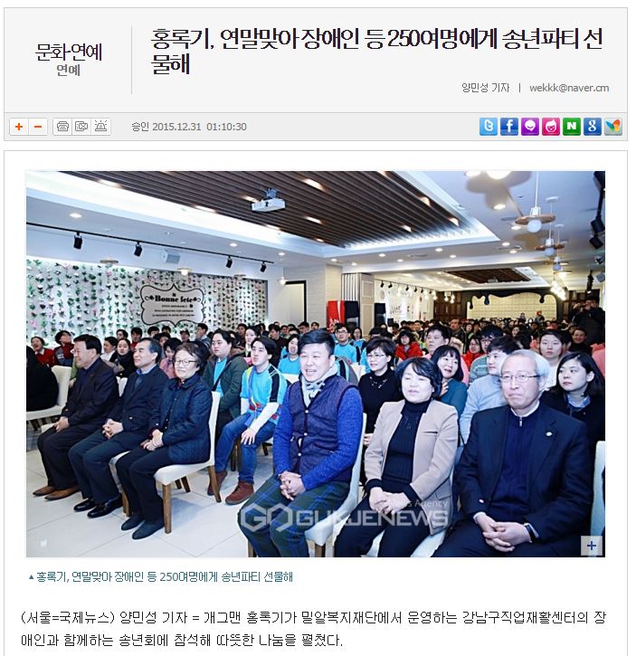 [국제뉴스] 홍록기, 연말맞아 장애인 등 250여명에게 송년파티 선물해