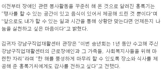 [뉴스엔] 홍록기 장애인 가족 250명과 송년회..1천만원 식사대접