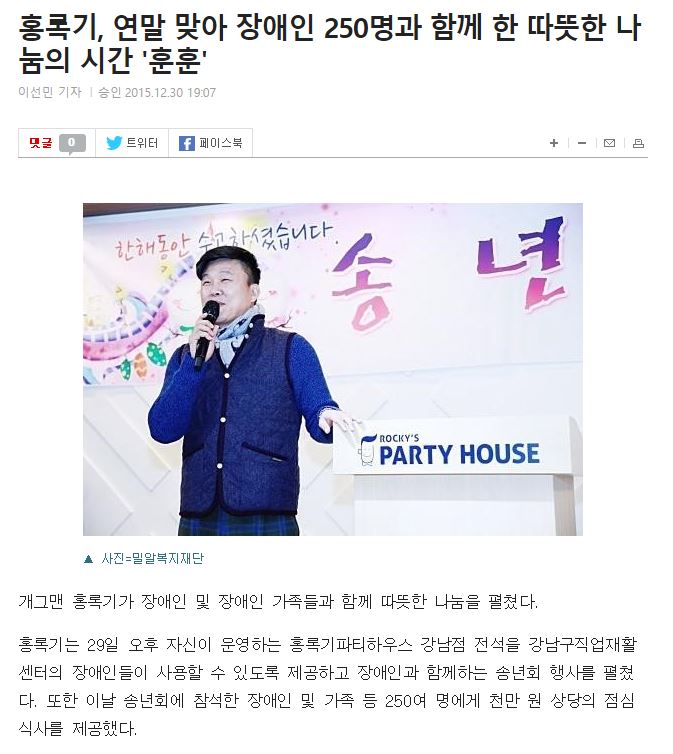 이전 [매일경제] 홍록기, 훈훈한 연말…장애인들과 함께한 송년회 다음 [아크로팬] 개그맨 홍록기, 연말맞아 250여명에게 송년파티 선물해