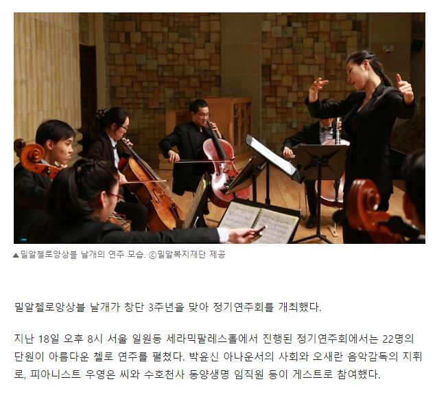 [크리스천투데이] 밀알첼로앙상블 날개, 제3회 정기연주회 펼쳐