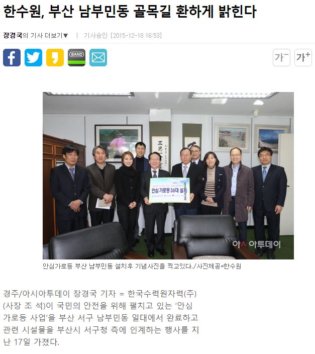 [일렉트릭파워] 한수원, 부산 남부민동 '안심가로등' 36본 설치
