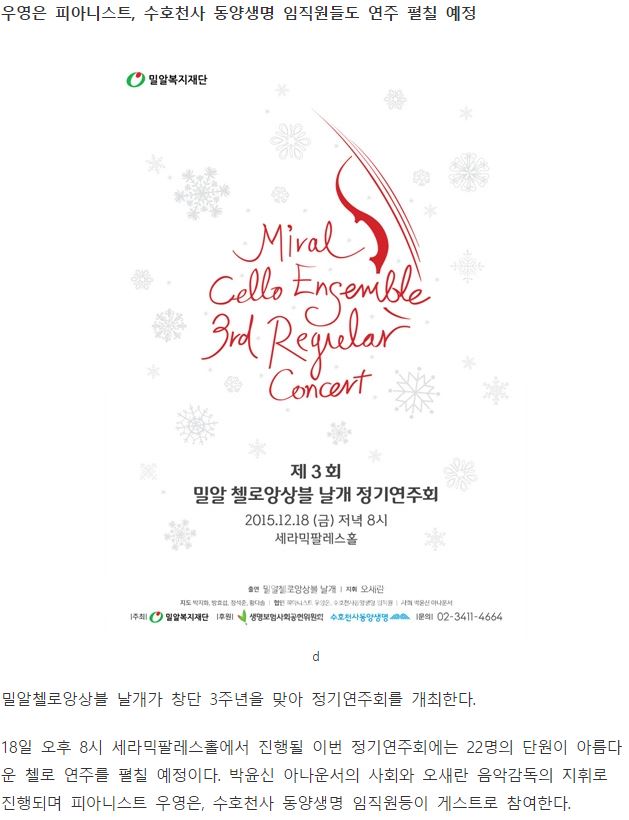 [복지연합신문] 밀알첼로앙상블, 아름다운 선율의 날개 펼쳐