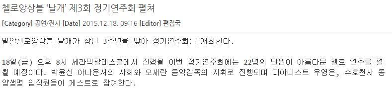 [아크로팬] 첼로앙상블 ‘날개’ 제3회 정기연주회 펼쳐