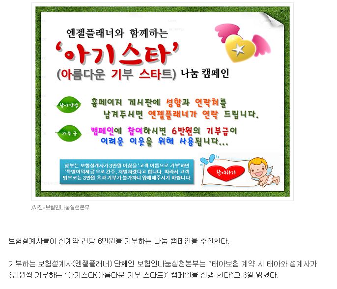 [머니위크] 보험설계사 엔젤플래너, 태아보험 계약 건당 6만원 기부하는 나눔 캠페인