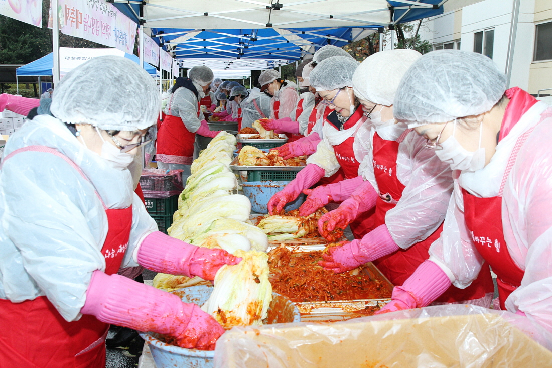 ○ 대청종합사회복지관, 110여명의 자원봉사자와 군인공제회, ㈜오더 등 임직원들의 참여로 25일,‘사랑담은 김장행사’ 진행