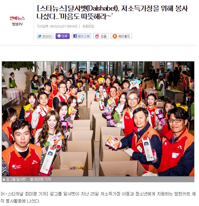 [스타저널] 달샤벳(Dalshabet), 저소득가정을 위해 봉사 나섰다..'마음도 따뜻해라~'