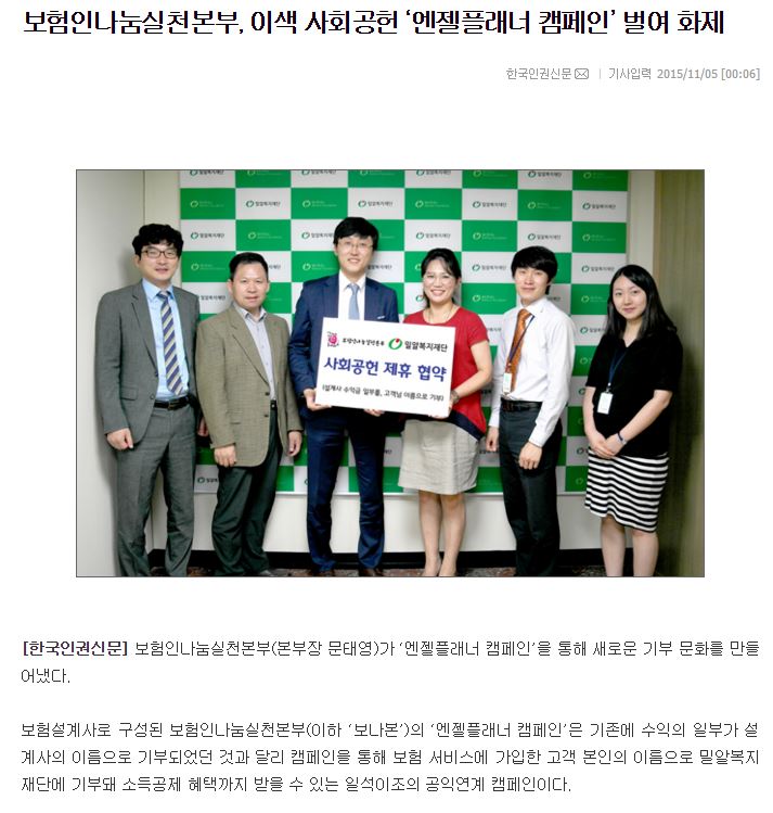 [한국인권신문] 보험인나눔실천본부, 이색 사회공헌 ‘엔젤플래너 캠페인’ 벌여 화제