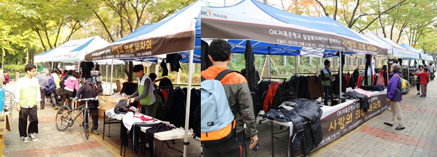 강남구 수서동에서 진행된 ‘사랑의 의류 바자회’에서는 OK저축은행에서 기부한 의류와 함께 신발, 생활용품 등 다양한 상품이 판매되었다.