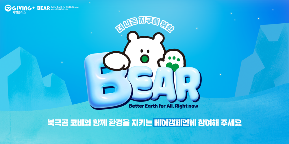 한편, BEAR 캠페인을 통해 처음 소개된 북극곰 캐릭터 ‘코비’는 상호 협력을 뜻하는 ‘CO-‘와 곰을 뜻하는 ‘Bear’의 앞글자를 따서 ‘Cobe(코비)’로 지어졌다. 자세한 코비의 탄생 이야기는 BEAR 캠페인 공식 홈페이지(https://givingplus.or.kr/BEAR/)에서 확인할 수 있다.