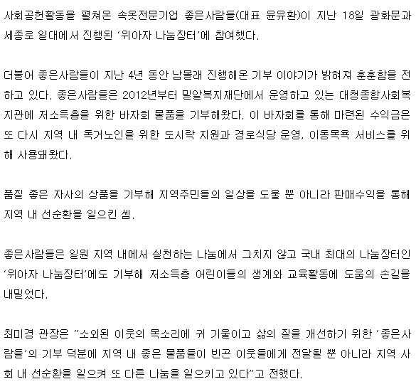 [크리스챤연합신문] ‘좋은사람들’ 위아자 나눔장터 참여