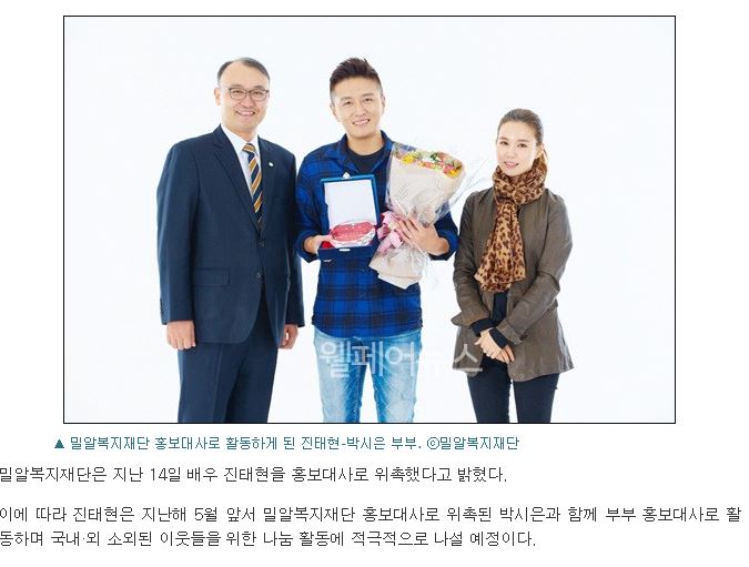 [한겨례] 배우 진태현 밀알복지재단 홍보대사 위촉