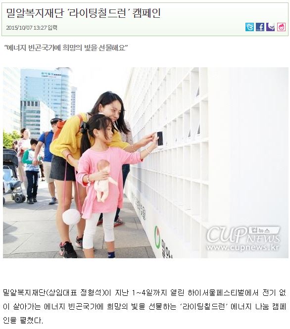 [국민일보] 밀알복지재단, 에너지 나눔 캠페인… ‘라이팅칠드런’ 2000여명 참여
