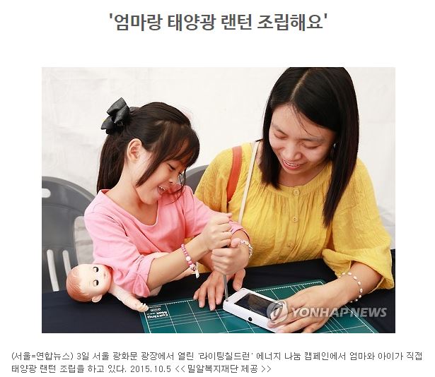 [연합뉴스] '엄마랑 태양광 랜턴 조립해요'