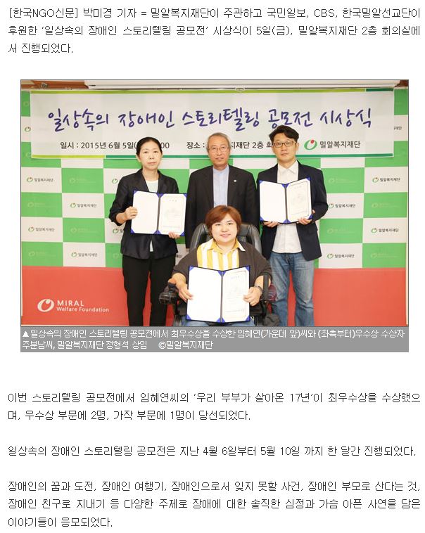 [한국NGO신문] ‘일상속의 장애인 스토리텔링 공모전’ 시상식