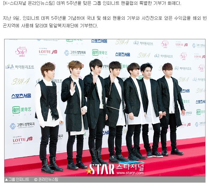 [스타저널] 인피니트(INFINITE) 팬클럽, 데뷔 5주년을 기념해 밀알복지재단에 특별한 기부 화제!