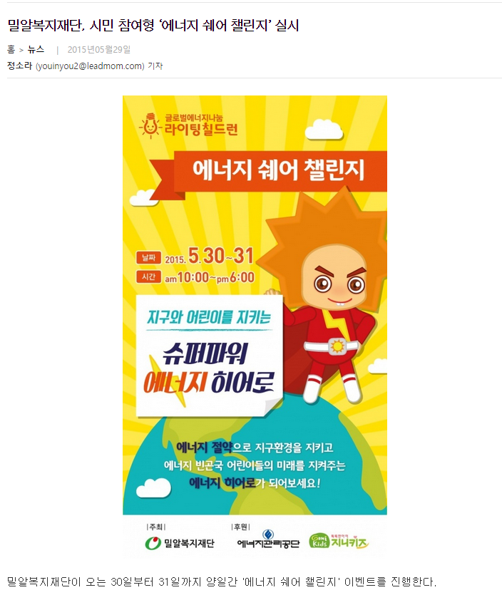 [리드맘] 밀알복지재단, 시민 참여형 ‘에너지 쉐어 챌린지’ 실시