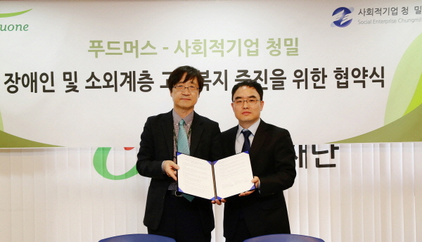 푸드머스 류영기 마케팅본부장과 밀알복지재단 사회적기업 청밀 양창국 대표가