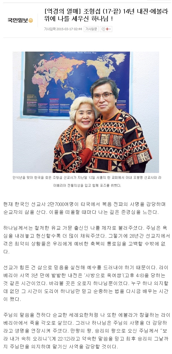 [국민일보 역경의역매] 조형섭 (17·끝) 14년 내전·에볼라 위에 나를 세우신 하나님!