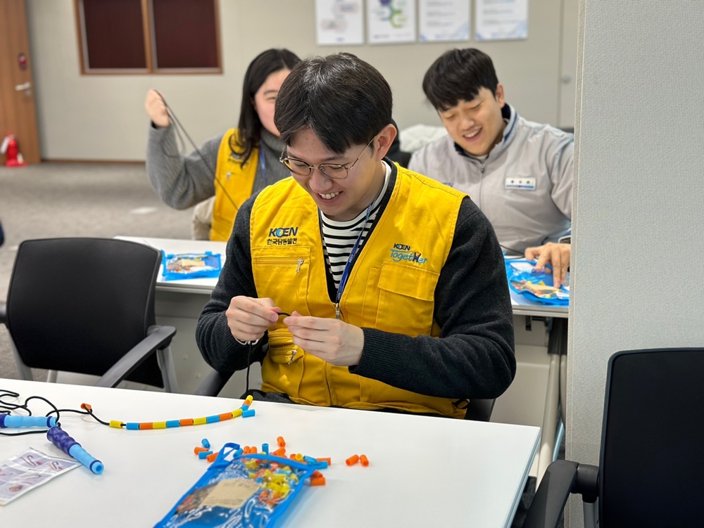 ■ 29일 한국남동발전 임직원들과 플라스틱 재활용한 친환경 비즈 줄넘기 만드는 봉사활동 실시… 총 144개 제작