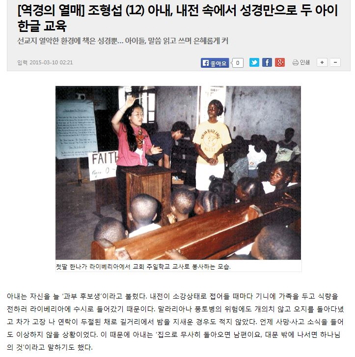 [국민일보 역경의열매] 조형섭 (12) 아내, 내전 속에서 성경만으로 두 아이 한글 교육
