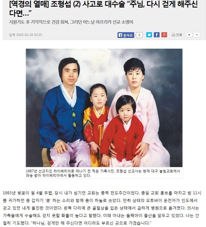 [국민일보 역경의열매] 조형섭 (2) 사고로 대수술 “주님, 다시 걷게 해주신다면…”