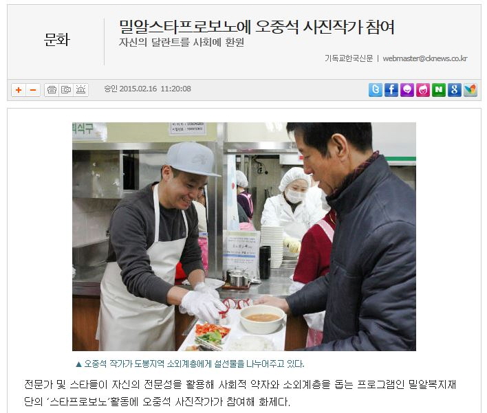 [기독교한국신문] 밀알스타프로보노에 오중석 사진작가 참여