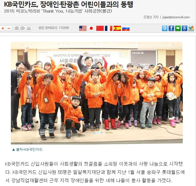 [이코노믹리뷰] KB국민카드, 장애인·탄광촌 어린이들과의 동행