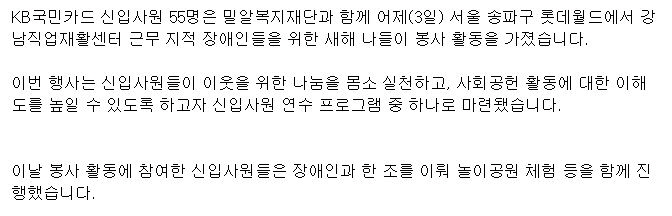 [파이낸스경제] KB국민카드 신입 사원, 새해 나들이 봉사 활동