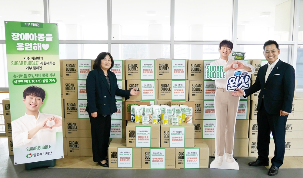 ■ 슈가에코, 가수 이찬원이 광고모델로 활동 중인 ‘슈가버블’ 세제세트 밀알복지재단에 기부