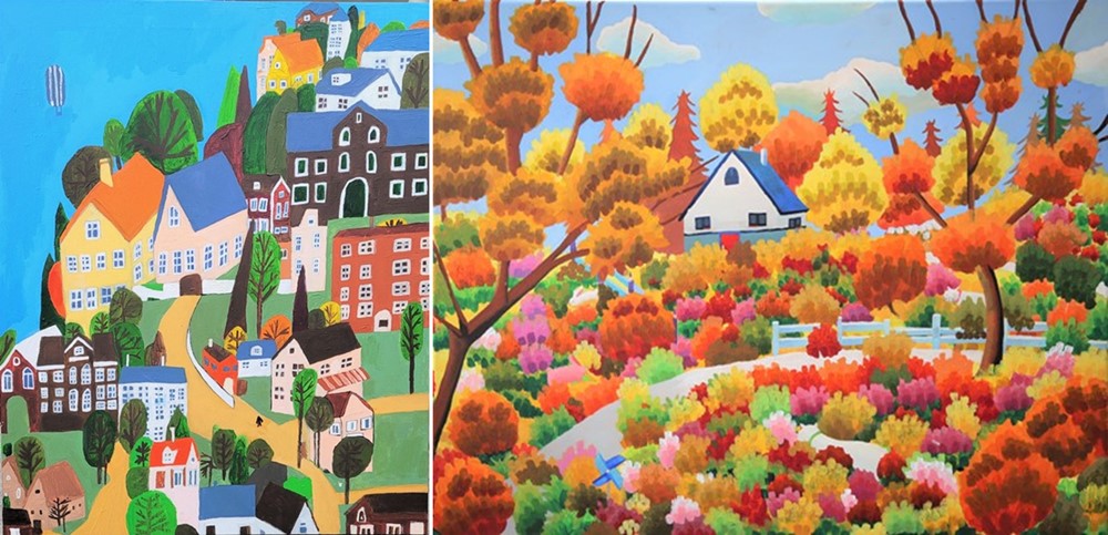 김성찬 작가 ‘마을과 나무가 있는 풍경’ / 김승현 작가 ‘가을 숲의 정원’