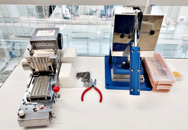 [사진2] 직업훈련생이 조작법을 배우게 될 자동 점자명함기(왼쪽)와 수동 점자명함기(오른쪽)