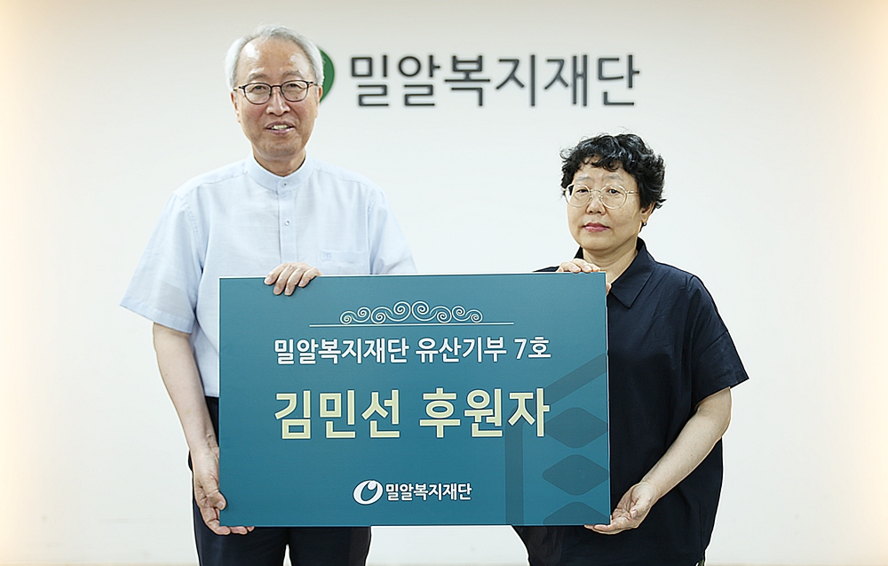 김민선 후원자는 지난 5월 말 세상을 떠난 아버지로부터 상속받은 재산 약 4000만 원을 밀알복지재단에 신탁 기부하면서 유산기부자로 위촉됐다. 이는 밀알복지재단의 최초 유산기부신탁 사례로, 김민선 후원자는 법정 상속분에 해당하는 부동산 여럿의 지분 전체를 매각한 다음 밀알복지재단에 기부하는 조건으로 하나은행과 신탁계약을 맺었다.