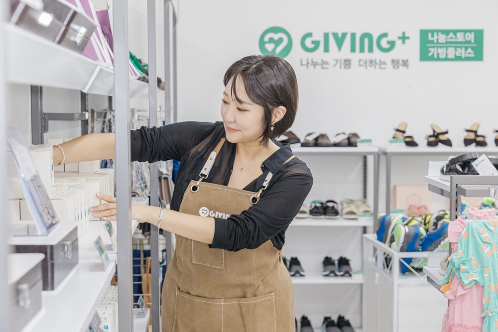 기빙플러스는 기업으로부터 재고·이월 상품을 기부 받아 판매한 수익금으로 취약계층에게 일자리를 제공하고 소각 위기에 놓인 자원을 순환함으로써 탄소 저감에 앞장서는 국내 최초 기업사회공헌(CSR) 전문 나눔스토어다.