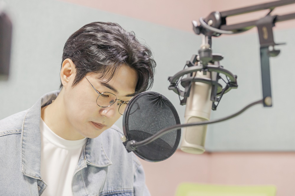 [사진1] god 데니안이 지난 4월 방영된 'MBC 봄날의 기적'에 내레이션 녹음을 하고 있다.