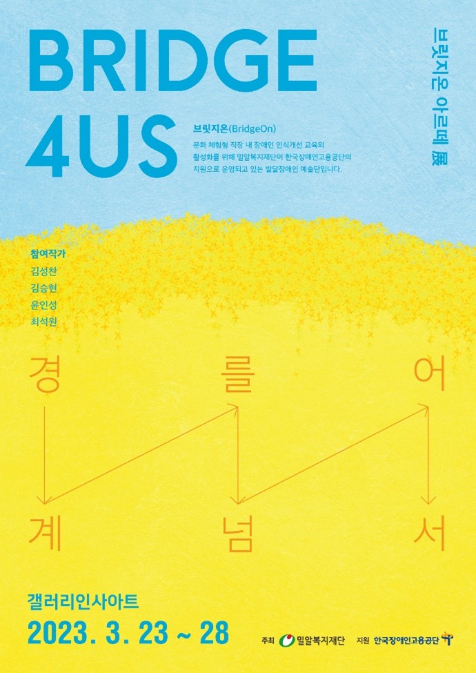 밀알복지재단(이사장 홍정길) 소속 ‘브릿지온 아르떼’가 3월 23일(목)부터 28일(화)까지 ‘BRIDGE 4US(브릿지 포 어스) - 경계를 넘어서’ 전시회를 개최한다.