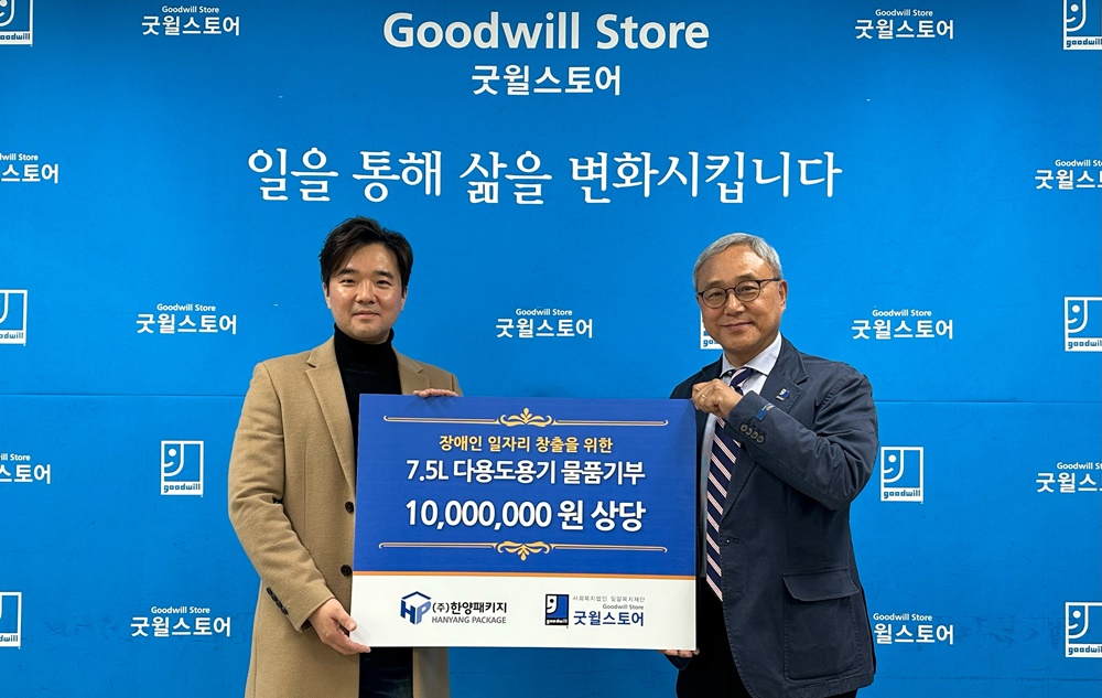 한양패키지, 발달장애인 일자리 창출 위해 굿윌스토어에 1천만 원 상당 물품 기부