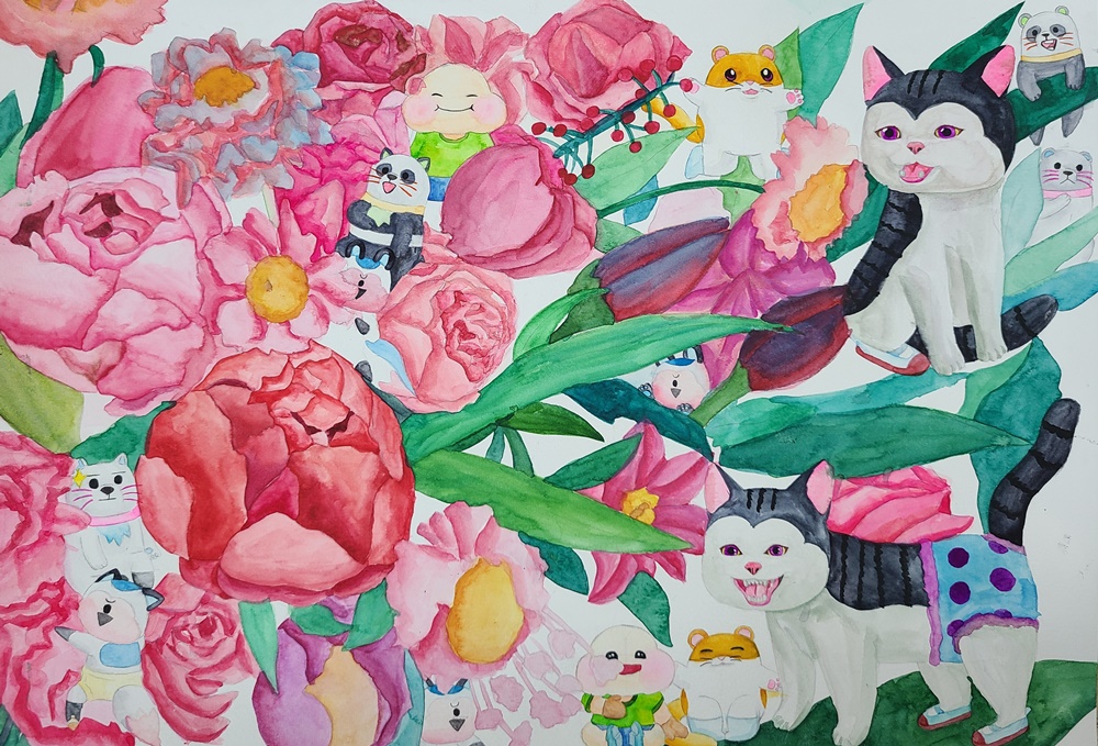 꽃과 친구들, water colors on paper 2022, 김지우