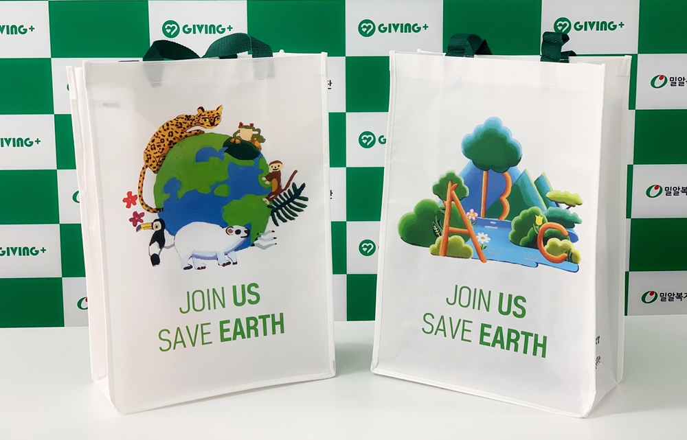 다회용 쇼핑백에는 밀알복지재단의 발달장애인 예술단 ‘브릿지온 아르떼(Bridge On Arte)’ 소속 작가들이 환경 보호를 주제로 완성한 일러스트가 담겨 의미를 더했다. 김승현 작가는 자연 풍경 속에 알파벳을 더해 환경 보호에 대한 메시지를 표현했으며, 최석원 작가는 사람들의 따뜻한 관심이 필요한 멸종 위기 동물들을 그려 넣었다.