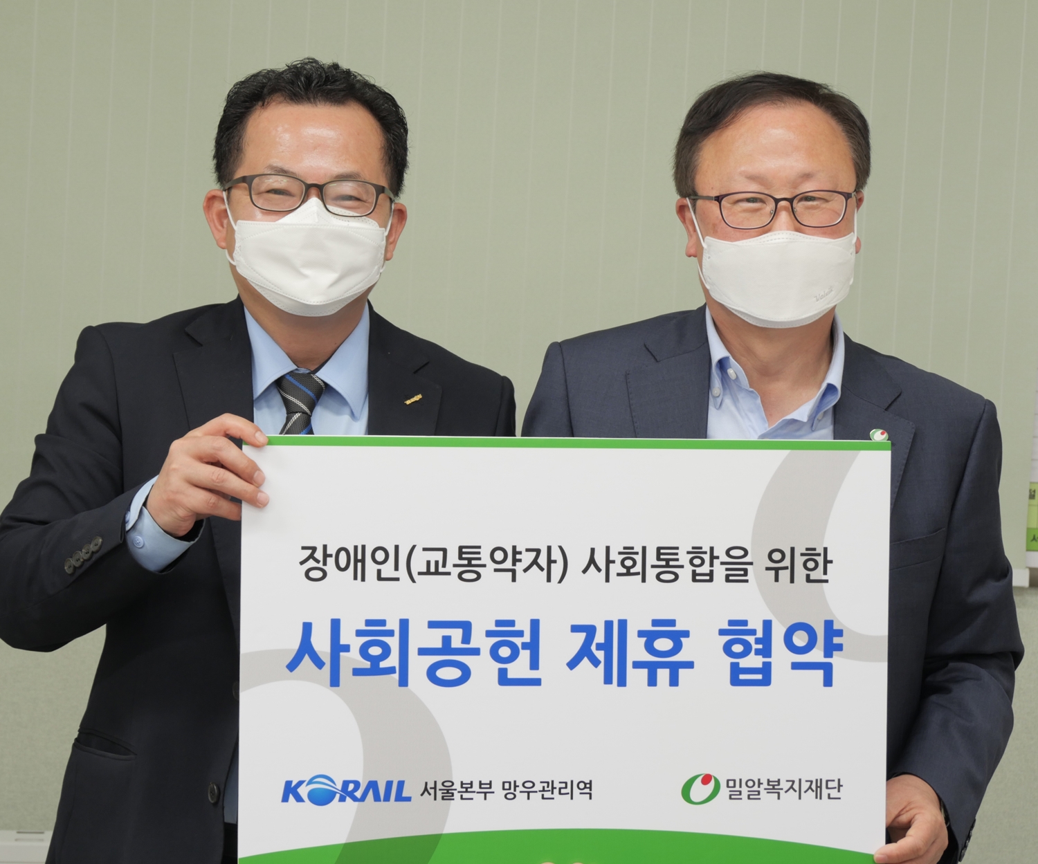 밀알복지재단(이사장 홍정길)은 코레일 서울본부 망우관리역(역장 문명국)과 14일(금) 경의중앙선 망우역에서 교통약자를 이동권 보장을 위한 사회공헌 업무협약을 체결했다.
