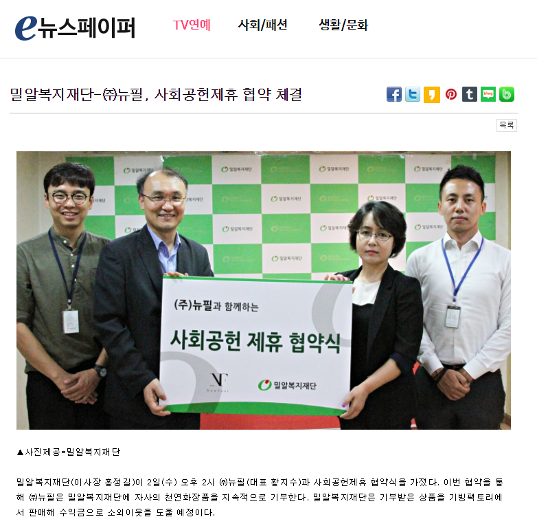 [e뉴스페이퍼] 밀알복지재단-㈜뉴필, 사회공헌제휴 협약 체결