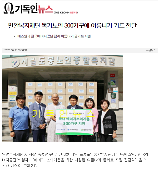[기독인뉴스] 밀알복지재단 독거노인 300가구에 여름나기 키트 전달