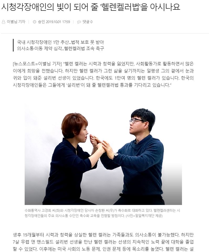 [뉴스포스트] 시청각장애인의 빛이 되어 줄 '헬렌켈러법'을 아시나요