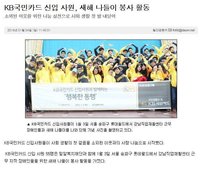 [아시아경제] KB국민카드 신입사원, 장애인들과 새해 나들이