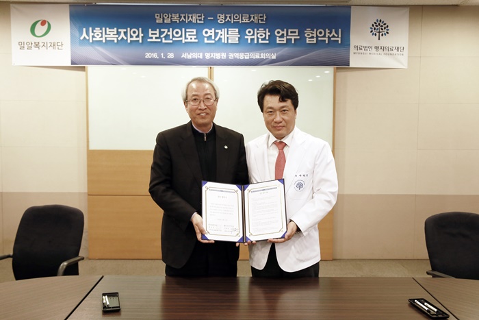 지난 1월 28일(목) 오후, 서남의대 명지병원에서 보건의료와 사회복지의 연계를 통해 더불어 살아가는 더 좋은 세상을 만들어가는 선도적인 역할에 힘을 합하기로 하고 두 기관 간 업무 협약식을 가졌습니다.