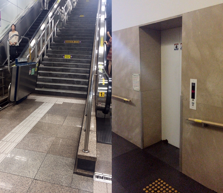 ▲ 광화문역은 1, 8번과 9번 출구 2곳에 외부 엘리베이터가 있지만, 역 내부 이동은 장애인리프트뿐이다