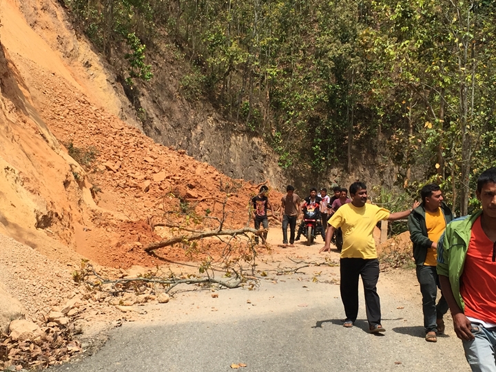 ▲2차 강진으로 인해 발생된 산사태로 길이 막힌 현지 상황 (신두팔촉)